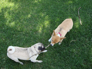 Chris and I finally got a firepit for our back patio. Chris, April (one of my best friends) and I, were able to enjoy it last Sunday. And yes... this firepit is the same one Dave and Jacque have! What can I say... They just have good taste! :) Of course the dogs (we are dogsitting for my parents) enjoyed it too!